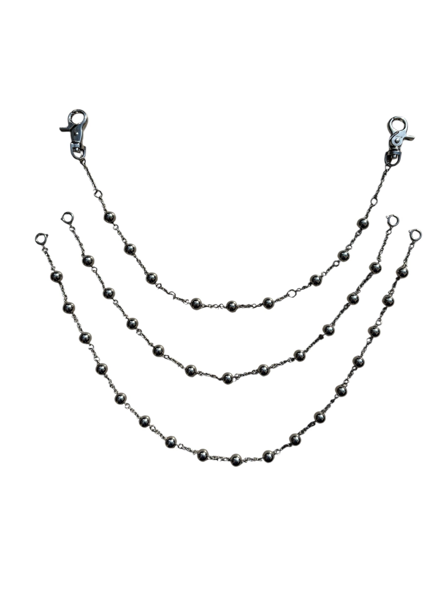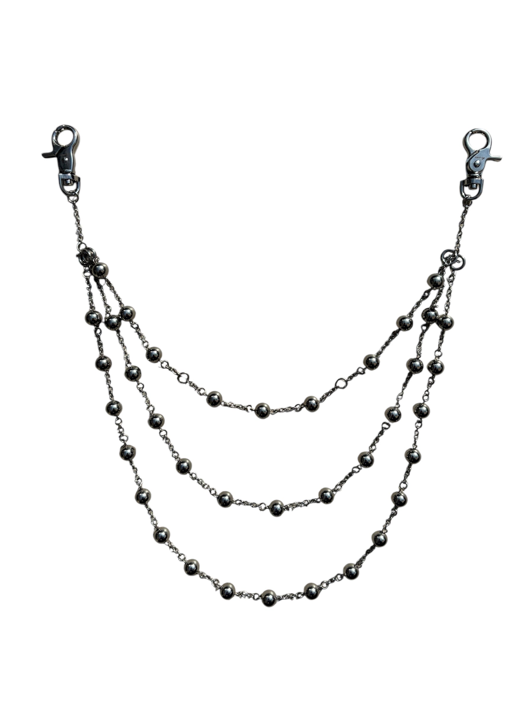 -The rosary wallet chain is solid stainless steel and is multi-purpose in design allowing for it to be worn as both a wallet chain and a necklace. The bottom 2 chains detach to allow for this.
